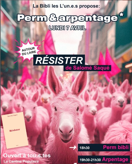 On vous donne rendez-vous le 7 avril pour un arpentage de Résister de Salomé Saqué, à la Cantine populaire au 14 rue Nationale.
