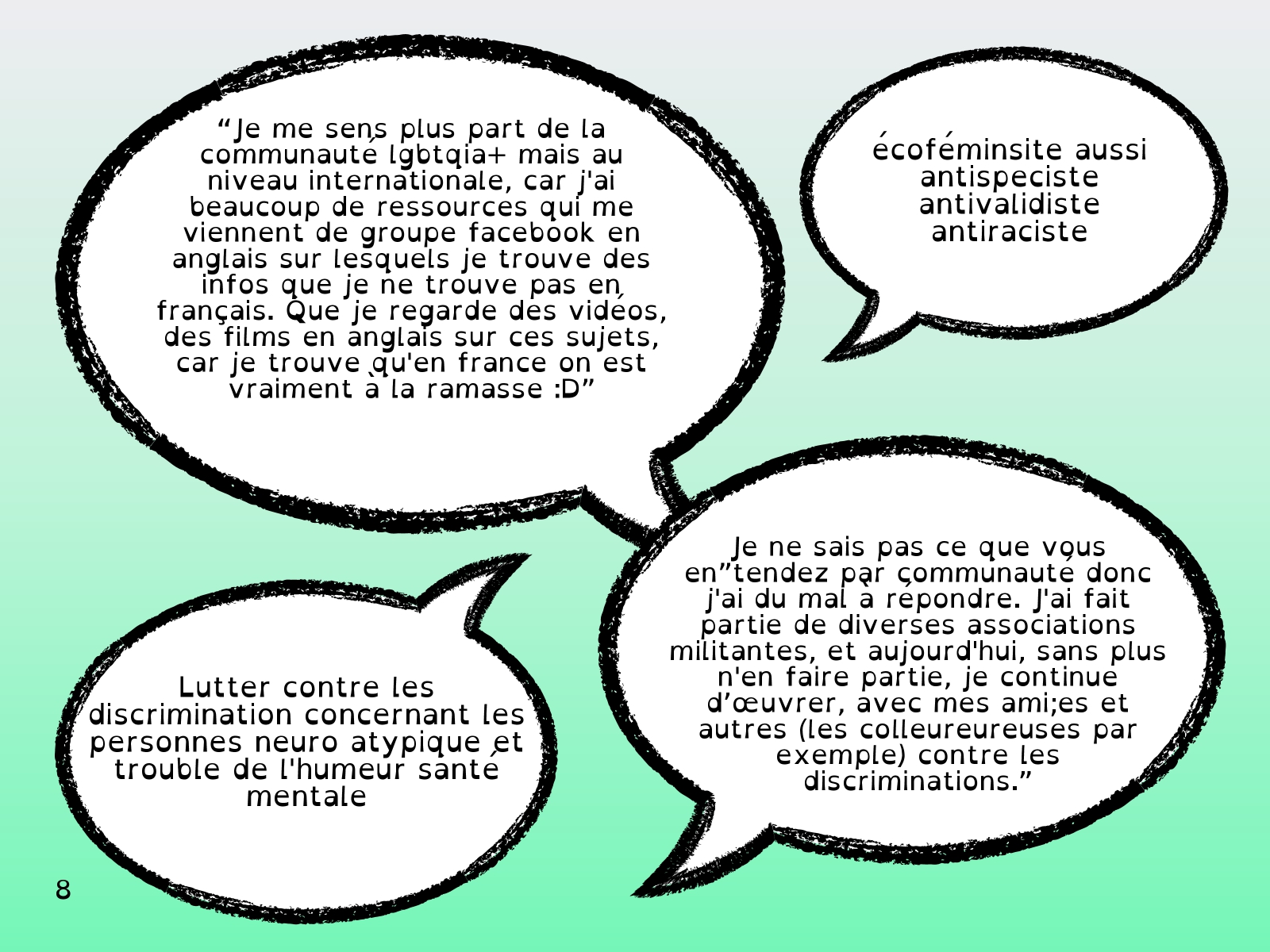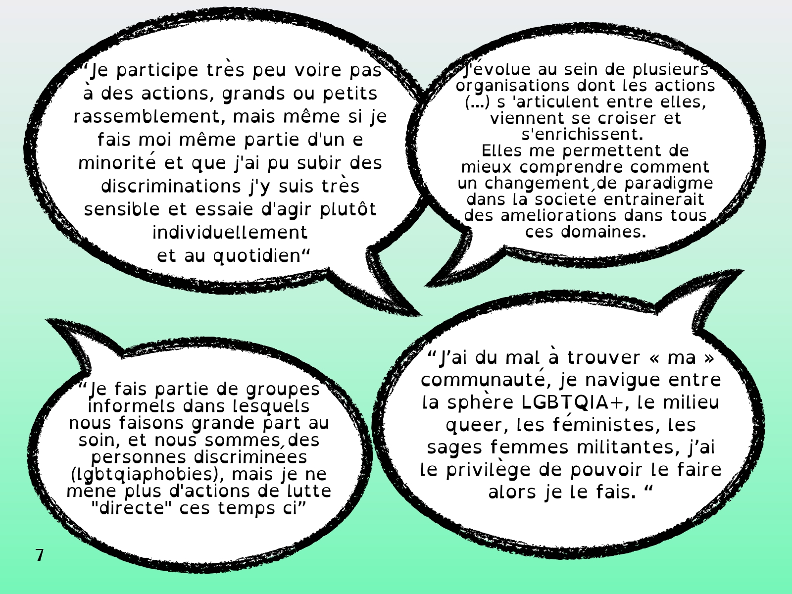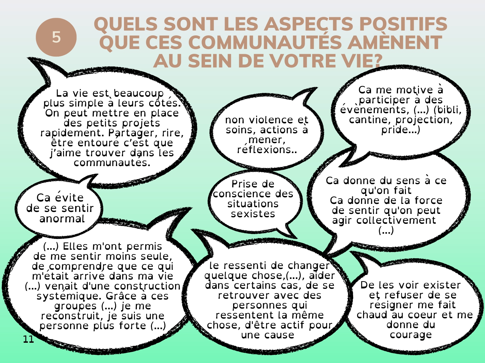 A suivre, la synthèse d’un questionnaire diffusé par la Fougue à l’automne dernier pour mieux capter les enjeux liés à ces questions. C’est tout anonymisé et c’est juste des grandes tendances qui ressortent, illustrées de commentaires des répondant.es.