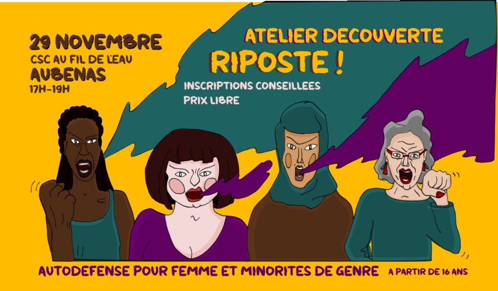 Pour continuer la lutte contre les VSS, La Fougue propose un atelier découverte Riposte le samedi 29 novembre à 17h à Aubenas !