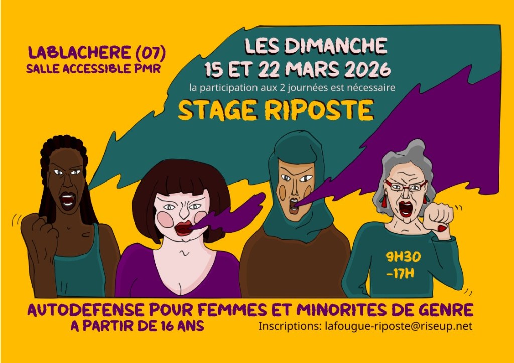 Vous pouvez déjà vous inscrire à lafougue-riposte@riseup.net et on vous donnera plus d’infos sur les tarifs et arrhes.