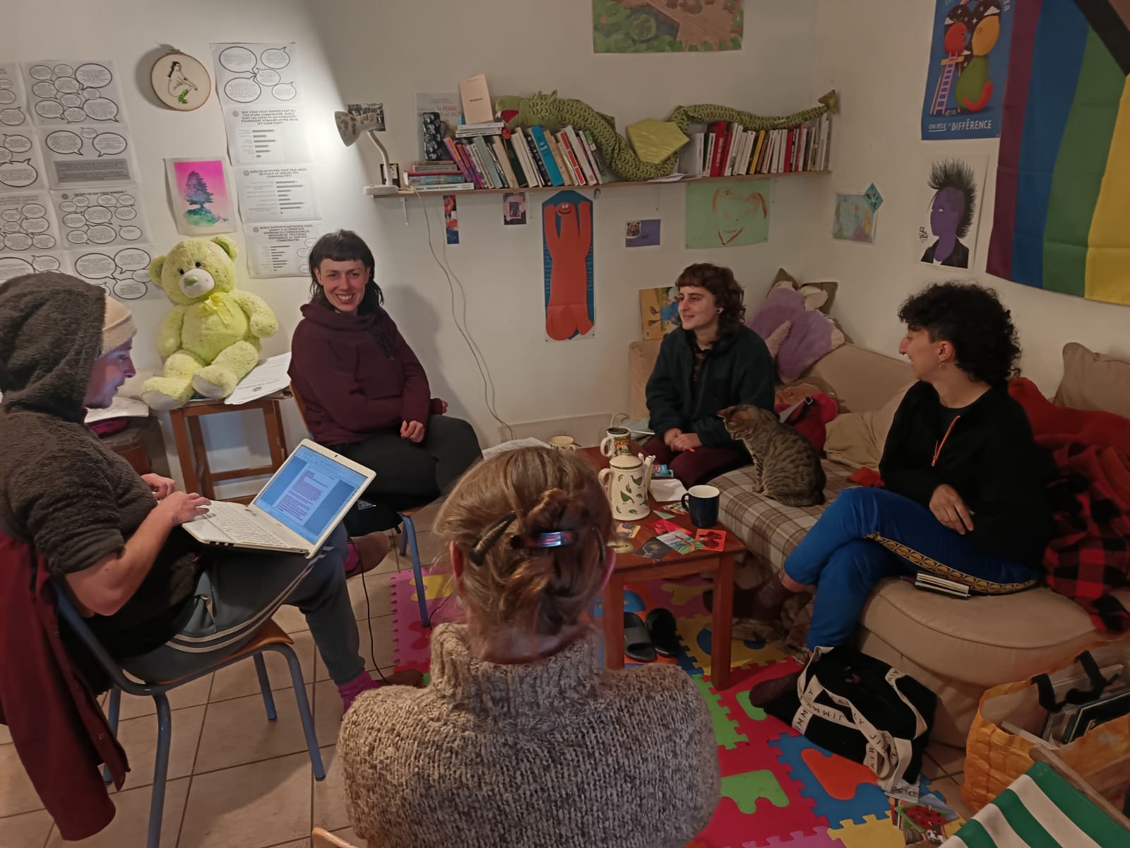 - Temps de réflexion collective inspirés de l’éducation populaire : identifier les pratiques existantes et les besoins. Ces moments sont construits au fil des dynamiques, dans une ambiance conviviale (goûter, buffet, apéro).