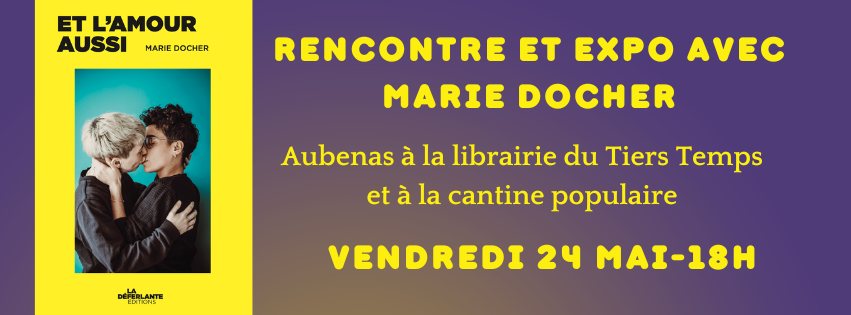 A 18h la bibli les l’un.e.s et la librairie du Tiers Temps vous proposent une rencontre autour du livre « Et l’amour aussi » de Marie Docher, édition La Déferlante. La soirée se poursuivra de manière informelle à la Cantine Pop à partir de 20h avec l’expo de photos du livre et un buffet partagé.