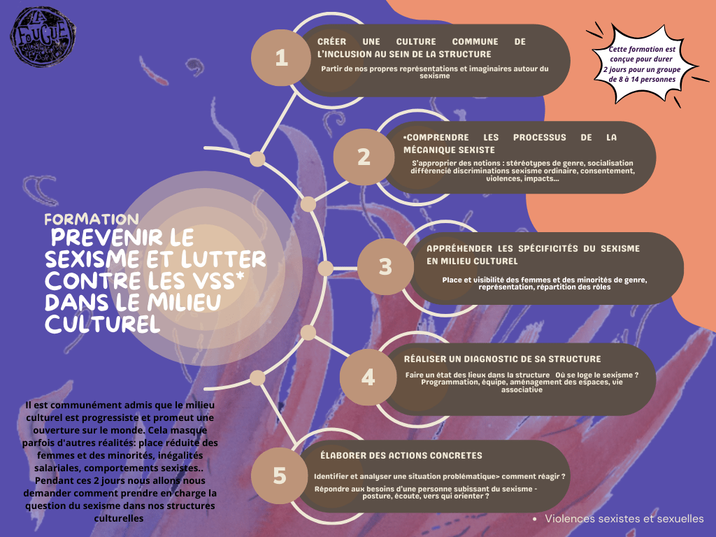 -Les formateurices: Nyno de l’asso sista, formatrice d’auto-défense féministe, formée à la méthode Garance , fondée dans les années 2000 et inspirée du Seito Boei, méthode d’autodéfense autrichienne et Jade de la Fougue, formée au théâtre de l’opprimé.e (théâtre forum), à l’animation de temps d’éducation populaire autour des questions de sexisme et de violences sexistes et sexuelles.